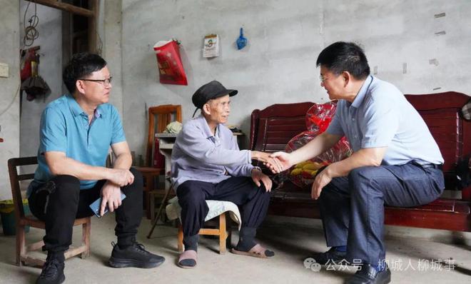 在大埔鎮(zhèn)老都六村,蔣威看望慰問了全國勞動(dòng)模范郭之龍。蔣威和郭之龍坐在一起話家常,關(guān)切地詢問他的生活及身體情況,感謝他對(duì)柳城發(fā)展作出的突出貢獻(xiàn)。