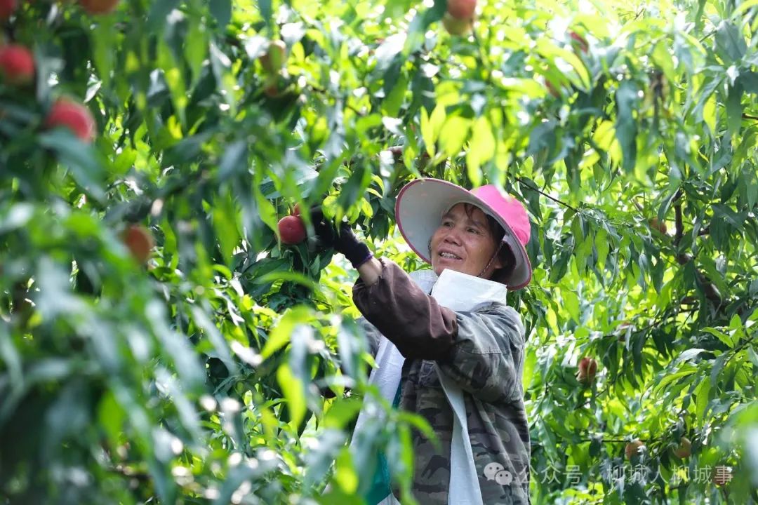 果園里處處飄香,粉嫩透紅的甜桃掛滿枝頭。削掉桃子上毛茸茸的皮,一口咬下去,清甜多汁,果香四溢。
