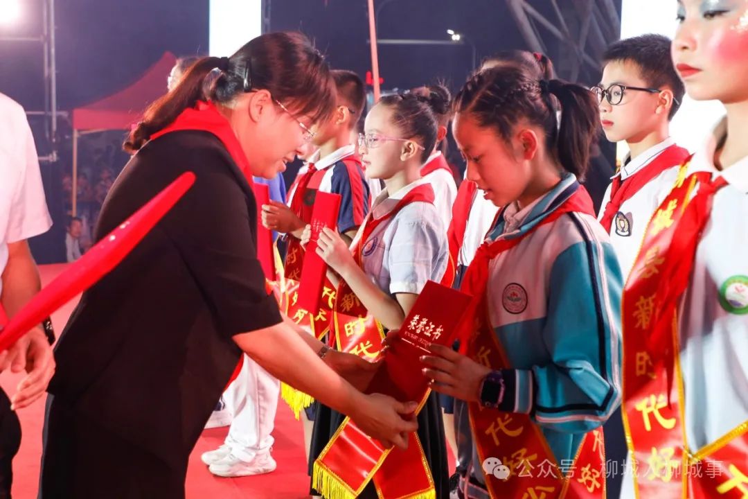 晚會(huì)還對(duì)柳城縣沖脈中心小學(xué)的學(xué)生韋羿帆、柳城縣東泉華僑農(nóng)場(chǎng)學(xué)校的學(xué)生羅熙雯、柳城縣馬山中心小學(xué)的學(xué)生梧可馨等10名2024年柳城縣“新時(shí)代好少年”進(jìn)行了頒獎(jiǎng)。晚會(huì)還舉行了柳城縣文史館、檔案館講解員頒發(fā)聘書儀式,文昌小學(xué)的林欣、黃歆雅、莫沄綺等6位同學(xué)獲選聘為首批柳城縣文史館、柳城縣檔案館“紅領(lǐng)巾講解員”。