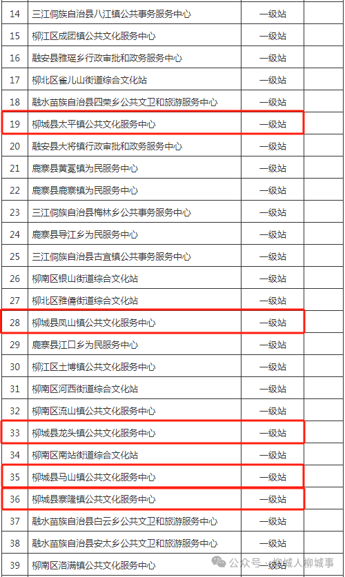 近日,柳州市文化廣電和旅游局組織開展對全市各縣區(qū)2024年第一批次鄉(xiāng)鎮(zhèn)(街道)綜合文化站評估定級工作,擬推薦鄉(xiāng)鎮(zhèn)(街道)綜合文化站特級站13個、一級站26個、二級站27個、三級站6個報自治區(qū)文化和旅游廳審核、復(fù)查。其中,柳城縣有9個公共文化服務(wù)中心上榜。