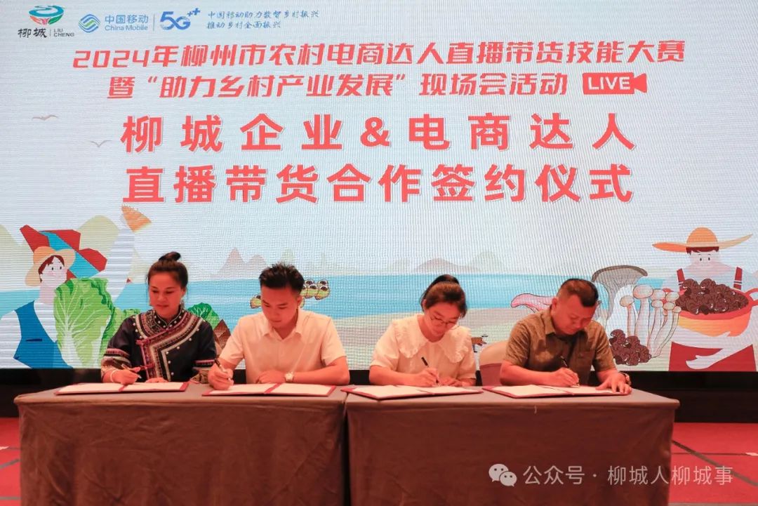 現(xiàn)場還舉行了企業(yè)直播帶貨合作簽約儀式,由柳城界稻香肉制品有限公司和柳州市意恒食品科技有限責任公司等企業(yè)代表分別與網(wǎng)絡名人、新農(nóng)人達成合作意向。