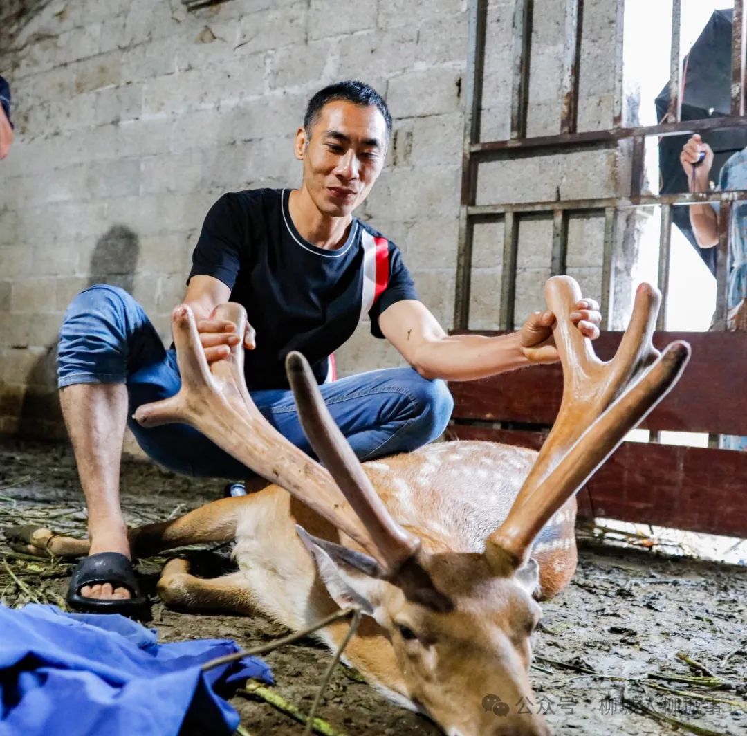 楊華不但自己飼養(yǎng),還帶動(dòng)六休村村民以及柳城縣東泉鎮(zhèn)、河池市、貴港市的養(yǎng)殖戶養(yǎng)殖梅花鹿,在采訪期間,楊華就接到了4通詢問(wèn)他關(guān)于梅花鹿養(yǎng)殖技術(shù)的電話,他笑著說(shuō)這些都是日常,周邊村民有不懂的問(wèn)題都問(wèn)他。目前楊華幫助周邊村民引種300余頭鹿仔,義務(wù)教授養(yǎng)殖戶飼養(yǎng)管理、割茸技術(shù)、助產(chǎn)、幼崽管理以及短視頻宣傳與運(yùn)營(yíng)技術(shù)。