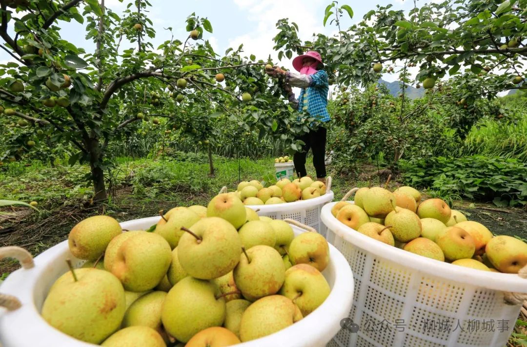 “今年的青花梨口感不錯,水分也夠足了?!逼焐酱逑吕锿头N植戶韋運壽介紹,今年是他種植青花梨的第8年,種植有8畝青花梨和新引進(jìn)了1畝多新品種青寶梨。目前有5畝青花梨已經(jīng)掛果豐產(chǎn),預(yù)計今年能收獲約3萬斤青花梨。