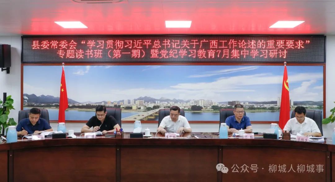 7月16日,縣委常委會(huì)“學(xué)習(xí)貫徹習(xí)近平總書記關(guān)于廣西工作論述的重要要求”專題讀書班(第一期)暨黨紀(jì)學(xué)習(xí)教育7月集中學(xué)習(xí)研討會(huì)召開(kāi)。