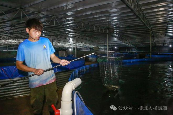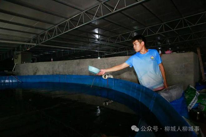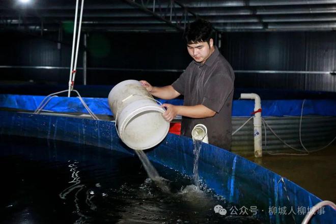 和一般的養(yǎng)殖場不同,在桂中漁業(yè)現(xiàn)代化示范區(qū)的養(yǎng)魚大棚里,小編完全聞不到魚腥味。96個圓池養(yǎng)殖桶整齊地排列著,成群的鱸魚在水中悠閑暢游。工作人員正在投喂圓池里的加州鱸魚。