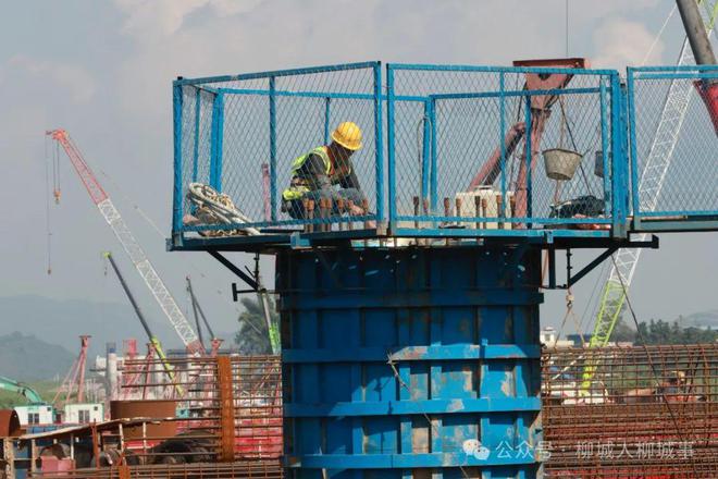 在羅鹿高速公路重點(diǎn)控制性工程融江特大橋施工現(xiàn)場,工人頂著高溫進(jìn)行橋梁樁基、墩柱、蓋梁等施工。融江特大橋全長1157米,河兩岸豎起了50多根橋墩,水上建設(shè)的4個(gè)平臺作業(yè)區(qū),已有2個(gè)平臺作業(yè)區(qū)接近完工。據(jù)了解,該施工段將爭取在8月上旬完成主橋樁基施工,為后續(xù)主橋的水上施工奠定基礎(chǔ)。