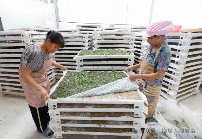在廠房內(nèi),這位“新幫手”正在快速的給蠶寶寶撒石灰、喂桑葉,一旁的社員在給一齡、二齡蠶換紗網(wǎng),打包即將出售的三齡蠶。據(jù)韋美芬介紹,這位“新幫手”是她到宜州學習參觀時,購入的一臺喂消一體小蠶生產(chǎn)線。該條生產(chǎn)線總共投入55萬元,包含機器和配套的蠶框2000個,可實現(xiàn)自動切割桑葉、噴灑石灰以及自動喂養(yǎng)等功能。通過傳送帶將一張張蠶框在出口處自動堆疊,節(jié)省喂蠶時間和節(jié)約占地面積。