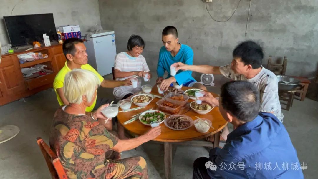 很快,菜做好了。一家人邀請鄰居們一起圍坐在桌旁共進午餐。韋何明不時給父母碗里夾菜,關懷備至?;蛟S因為離別在即,這餐團圓飯吃得并不熱鬧。不難看出,韋何明有些心事重重。他說他有些擔心在家的父母。