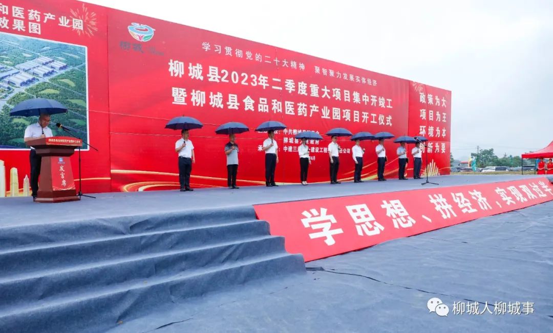 “我宣布,柳城縣2023年二季度重大項目集中開竣工暨柳城縣食品和醫(yī)藥產(chǎn)業(yè)園項目開工!”柳城縣委書記李柳彬宣布項目開工,縣長何韜致辭。縣人大常委會主任羅長青,縣政協(xié)主席蔣威,縣委常委、副縣長李季參加本次活動。