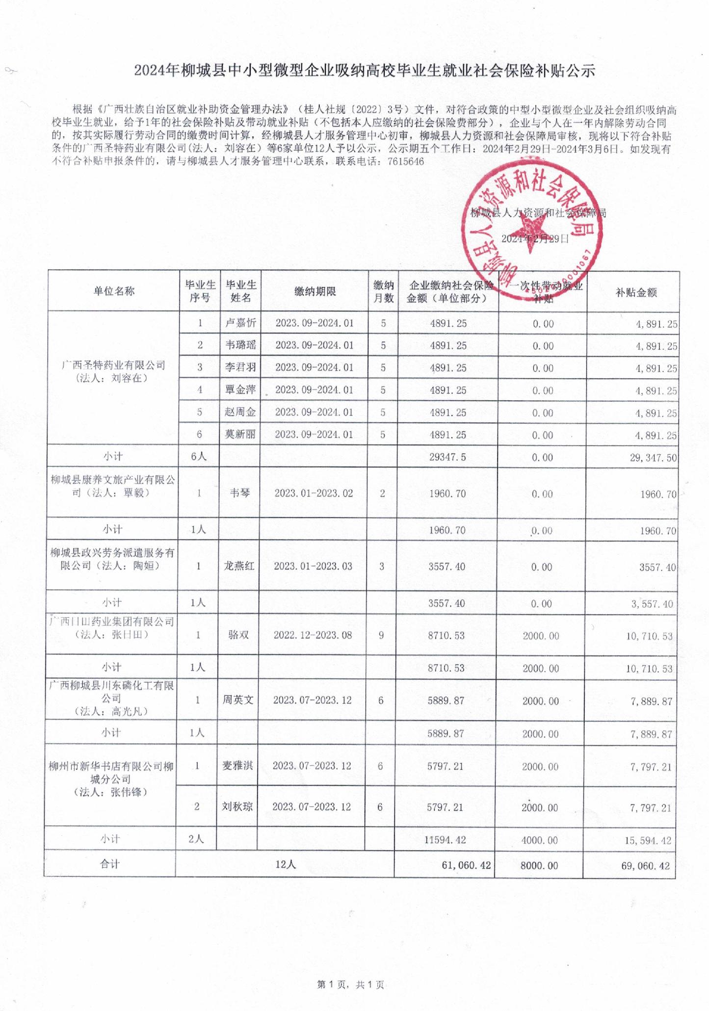 2024年中小型微型企業(yè)吸納高校畢業(yè)生就業(yè)社會保險補貼公示
