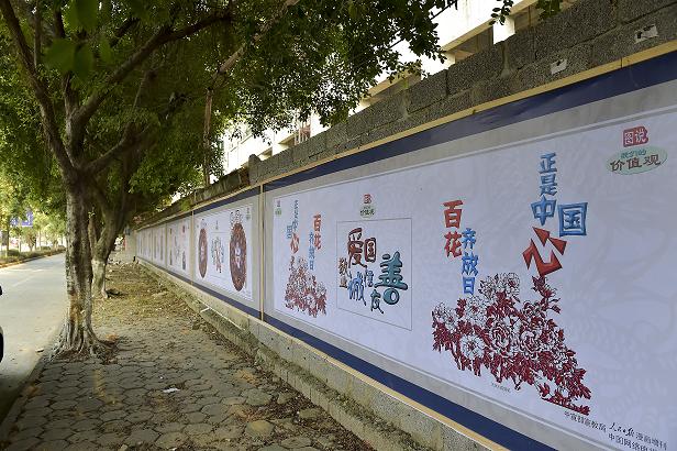 此次活動以張貼宣傳畫的方式進(jìn)行,在縣城建筑工地圍欄檔墻上張貼“圖說我們的價(jià)值觀”公益廣告宣傳。通過直觀的視覺沖擊,生動地展現(xiàn)出社會主義核心價(jià)值觀“富強(qiáng)、民主、文明、和諧,自由、平等、公正、法治,愛國、敬業(yè)、誠信、友善”的基本內(nèi)容,向廣大干部群眾形象生動地宣傳了社會主義核心價(jià)值觀,擴(kuò)大對社會主義核心價(jià)值觀的認(rèn)知認(rèn)同和參與意識,傳遞身邊正能量,切實(shí)提升干部群眾素質(zhì),營造良好社會氛圍。