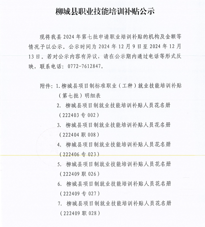 柳城縣職業(yè)技能培訓(xùn)補(bǔ)貼公示(第七批)