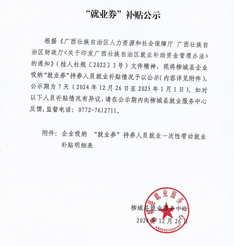 來源: 柳城縣人力資源和社會保障局  |   發(fā)布日期: 2024-12-26 11:30