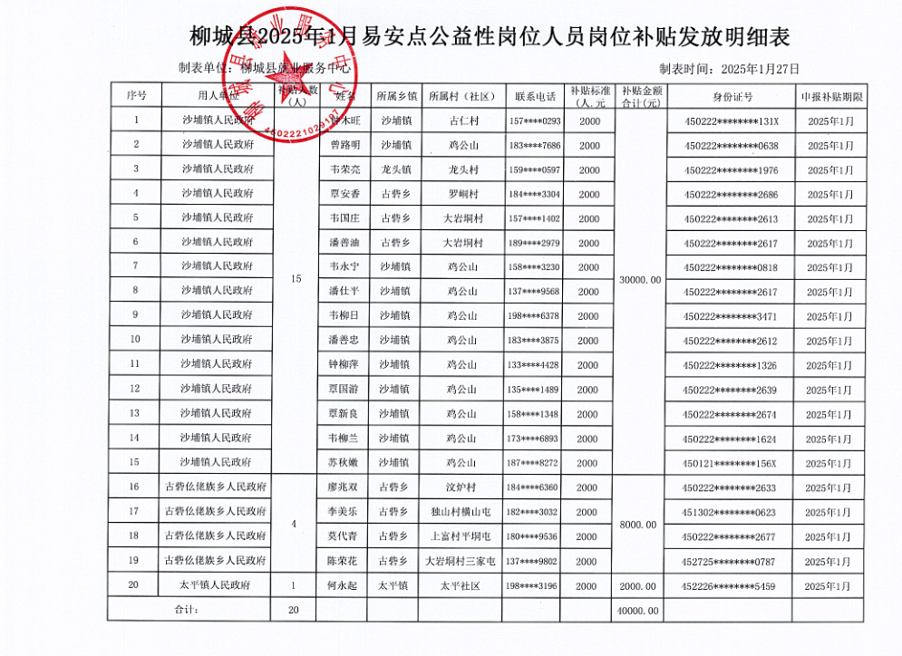 2025年1月易安點公益性崗位人員崗位補貼發(fā)放公示