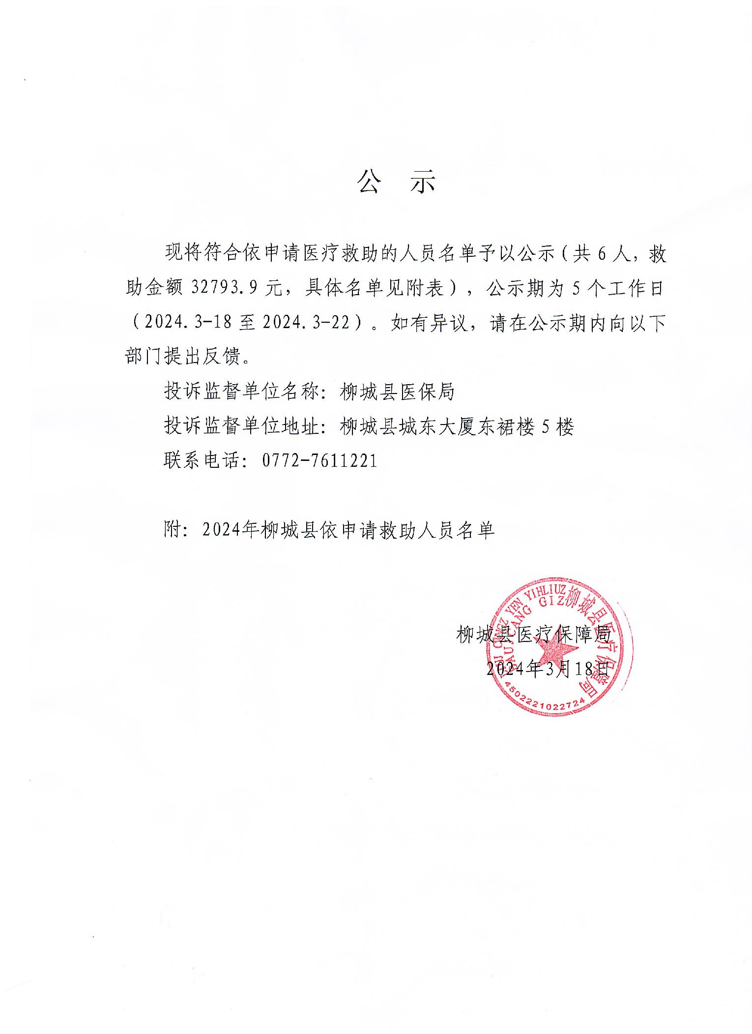 2024年柳城縣依申請(qǐng)救助人人員公示材料(第四批)