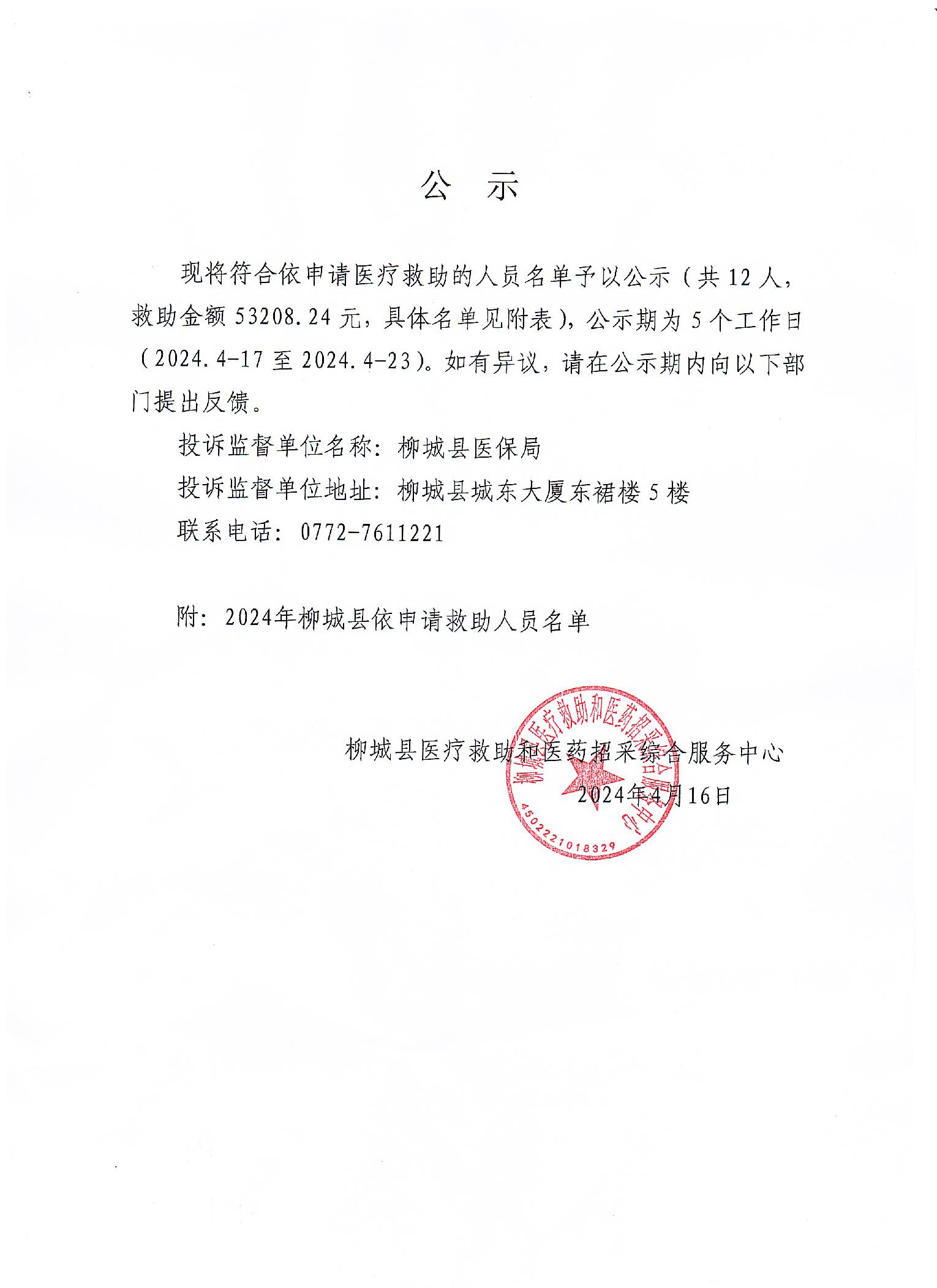 2024年柳城縣依申請(qǐng)救助人員名單公示(第六批)