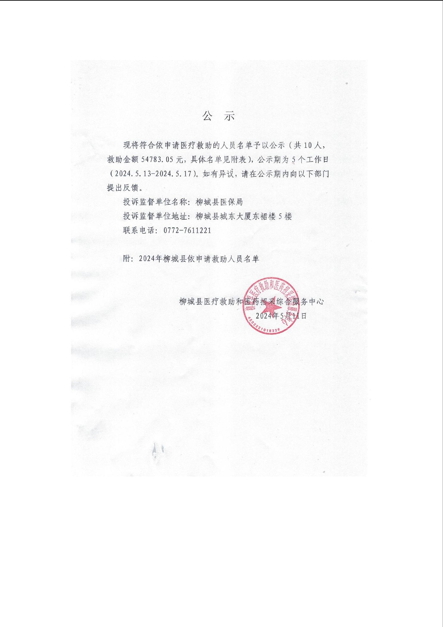 2024年柳城縣依申請救助人員名單公示(第八批)